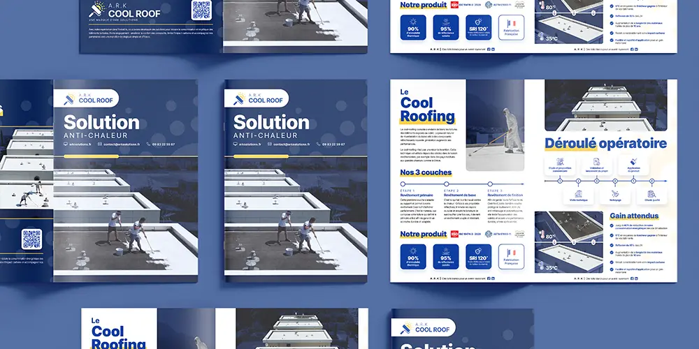 Conception de plusieurs brochures présentant la solution de cool roof et ses bénéfices pour les entreprises.