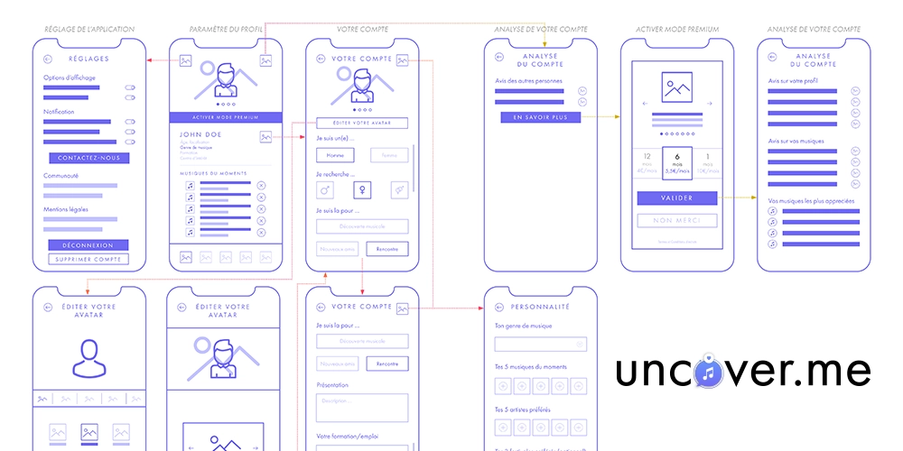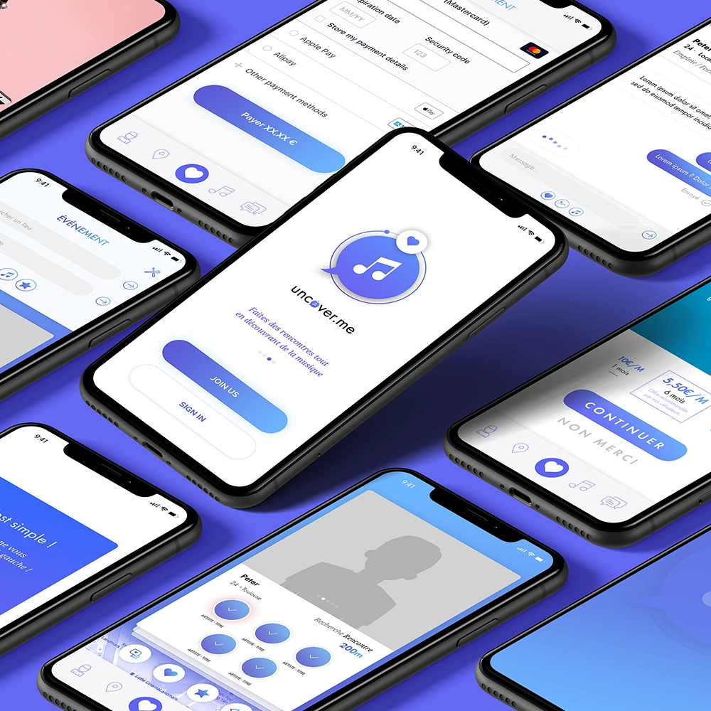 Dans le cadre de mon master, j’ai développé l'application Uncover.me : analyse du marché, business plan, cahier des charges et création de l’identité visuelle pour positionner l’application sur un secteur très concurrentiel.